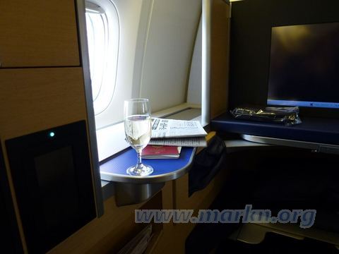 日本との往復が毎月、多いときは月2回とかになることがあります。さすがに疲れるのでアップグレードしよう! ということで日本からの便をファーストクラスにしました。対価はマイルの場合45,000マイル、アップグレードポイントなら今は20ポイントです(このときは14ポイント)。