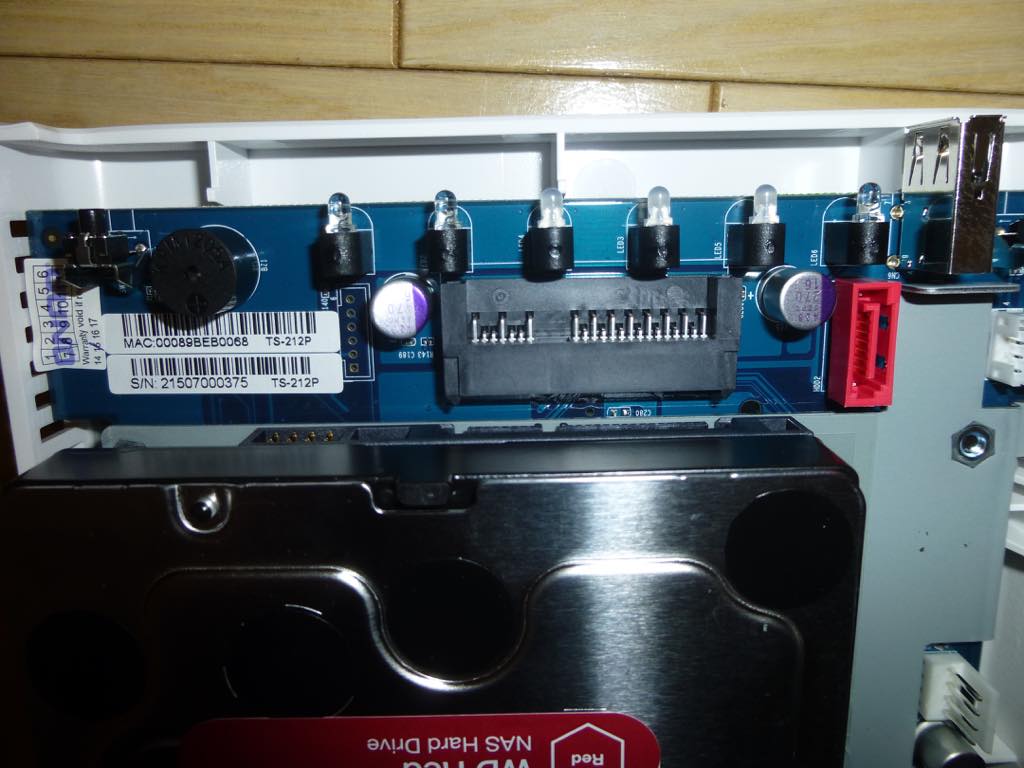 1台目はコネクタが基盤に直付けされており、挿し込むだけです。ケーブルを使うのかと思って少々迷いました。HDDはコネクタに挿してからねじ止めします。HDDを1台のみ内蔵する場合、作業はここで終わりです。