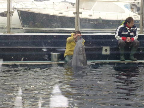 イルカショーもやっていました。右に暇そうな係の男の人がいたりして、なんだかのんびりしか感じです。
