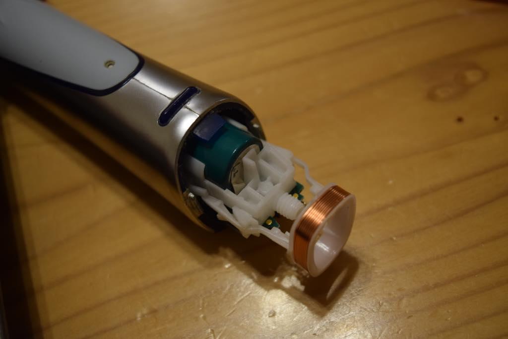ここまでできれば、歯ブラシ本体を裏返して、電池を外すことができます。
