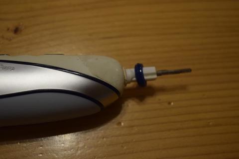 最初に、歯ブラシヘッドを取り付けるところにある青いリングを外します。