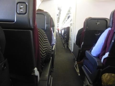 フライト変更の影響で、かなり後方の座席ですが、幸いなことに通路側です。