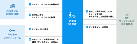 これに代わり、マイナンバーカードを使ってキャッシュレスで購入決済を行うことにより、「マイナポイント」を付与するのが、「マイナポイント事業」です。