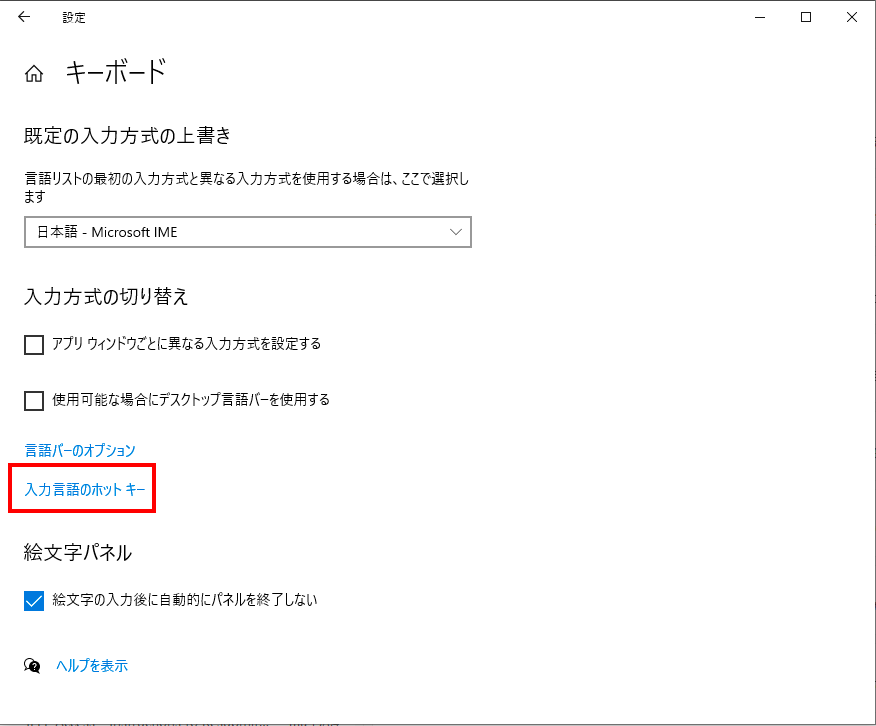 だいたい入力言語の切り替えのホットキーが固定のいくつかの選択肢しかない、というのがどうなんでしょうかね。